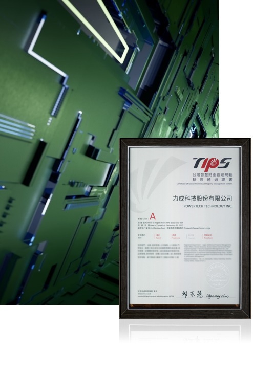 Strengthening key technologies to maintain leading position in the global market has always been PTI's vision and goal. In order to strengthen intellectual property portfolio, protect and apply research and development achievements, and comply with corporate governance regulations. PTI implemented the Taiwan Intellectual Property Management System (TIPS) in 2020, has successfully passed the annul TIPS inspection and re-verification, demonstrating PTI's determination to continuously optimize and refine its intellectual property management system.
